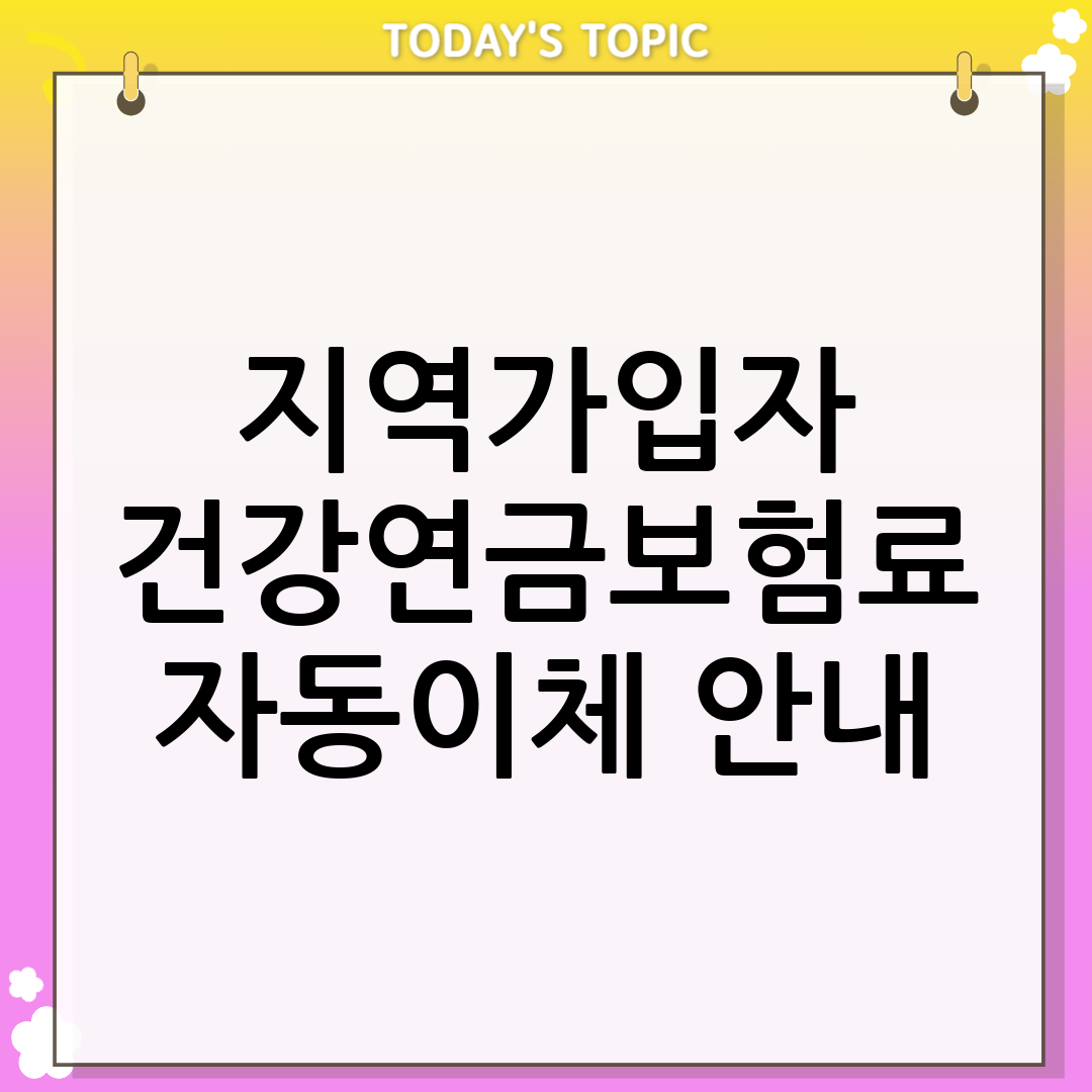 지역가입자 건강·연금보험료 자동이체 안내 정부24 바로가기 지역가입자 건강·연금보험료 자동이체 신청 안내: 간편하게 보험료 납부하세요! 지역가입자 여러분, 건강보험료와 국민연금 보험료 납부, 이제 더욱 간편하게 자동이체로 관리하세요! 복잡한 절차 없이 온라인 또는 방문을 통해 지역가입자 건강·연금보험료 자동이체를 신청하고, 납기일을 놓칠 걱정 없이 편리하게 보험료를 납부할 수 있습니다. 이 글에서는 자동이체 신청 방법, 대상, 혜택 등 필요한 모든 … 더 읽기