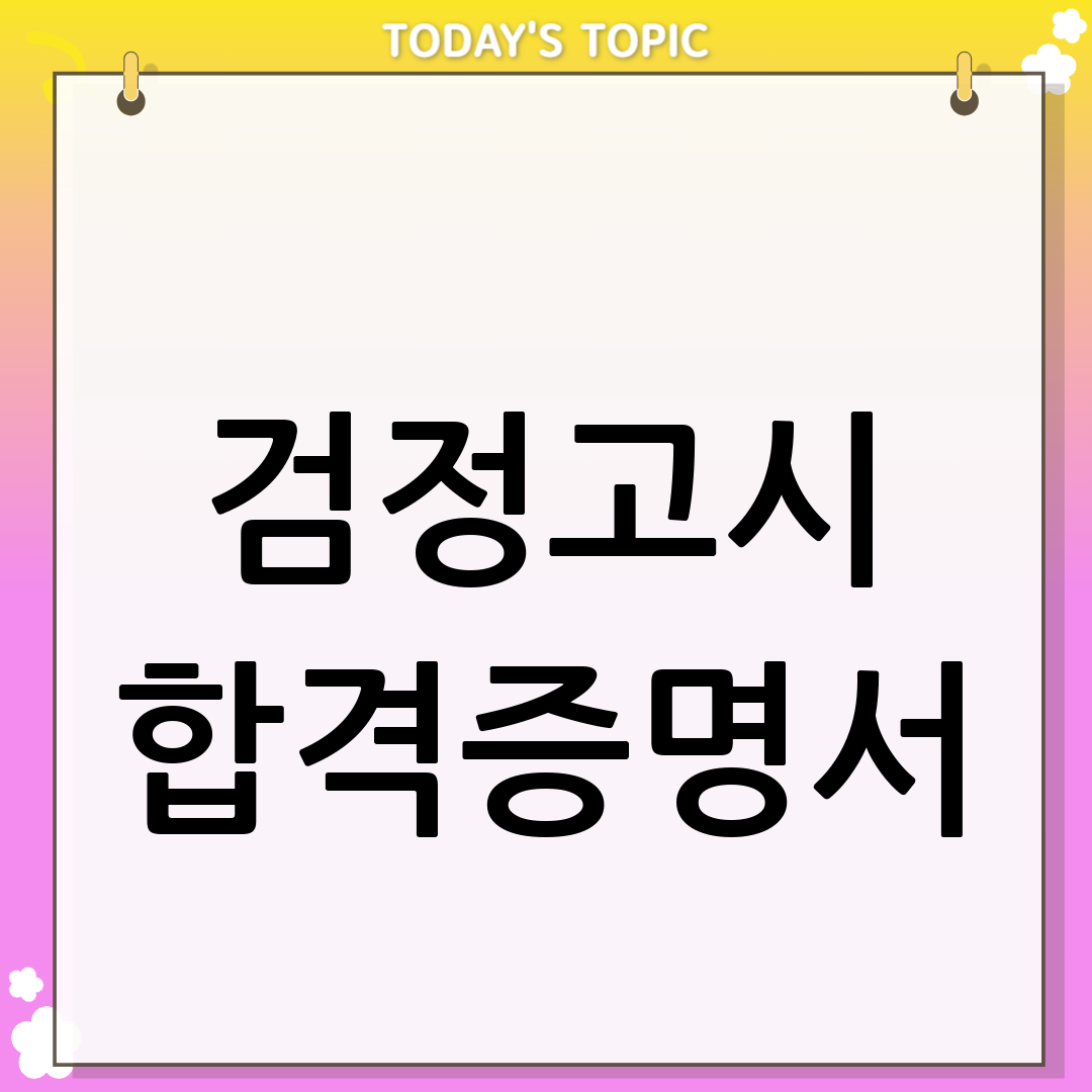 검정고시 합격증명서는 검정고시 합격 사실을 증명하는 서류이며, 즉시 발급이 가능합니다. (근무시간 내 3시간 이내)