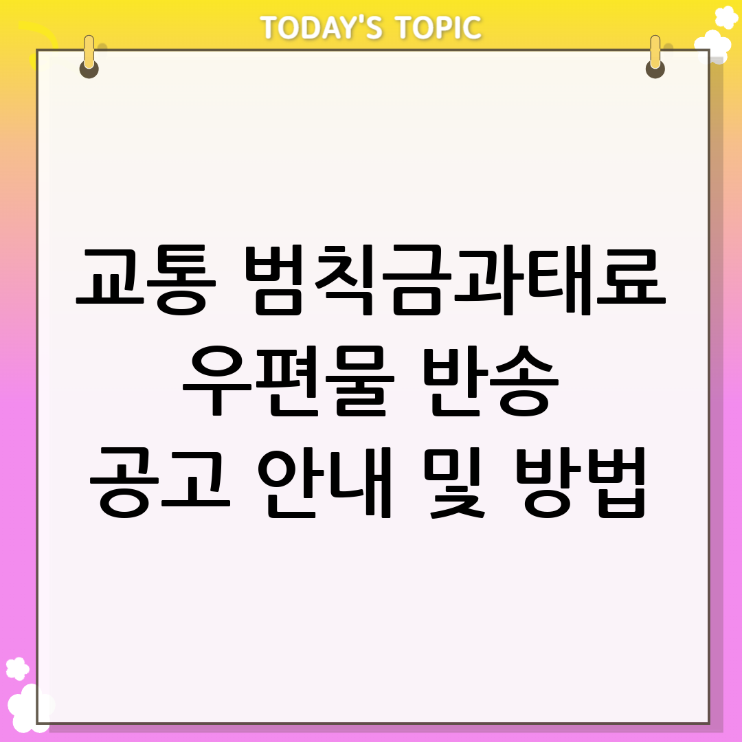2025년 10월, 대한민국 국민 여러분 안녕하세요! 오늘은 교통 범칙금 및 과태료 미납으로 인해 우편물이 반송된 경우에 대한 중요한 정보를 알려드리고자 합니다. 혹시 ‘나에게도 해당되는 내용일까?’ 궁금하신 분들은 지금부터 집중해주세요! 특히, 이 글에서는 교통 범칙금·과태료라는 핵심 키워드를 중심으로 자세하게 안내해 드리겠습니다.