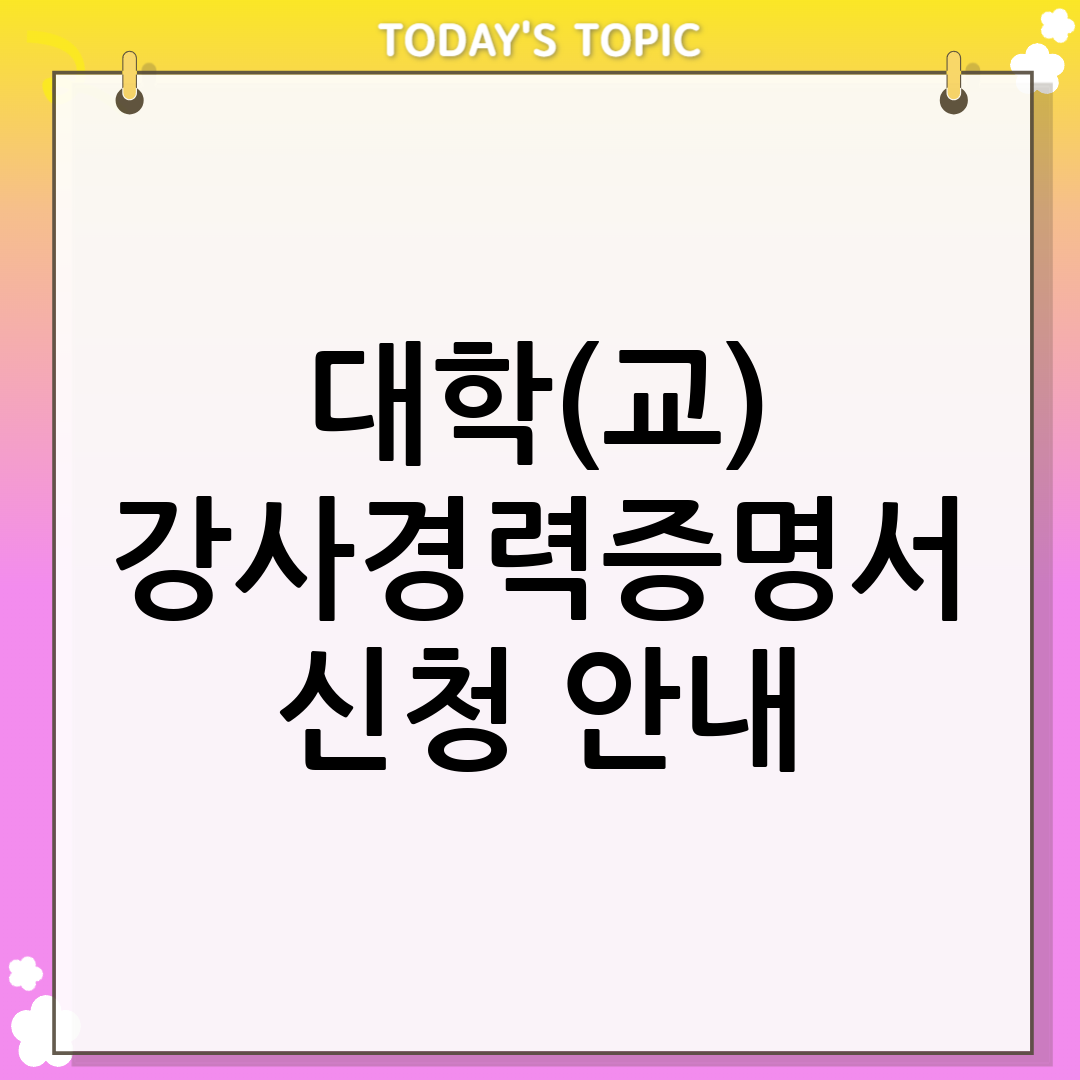 이 정보가 대학교 강사 경력 증명 발급에 도움이 되었기를 바랍니다. 대학교 강사 경력 증명 발급을 통해 여러분의 경력이 더욱 빛나기를 응원합니다.