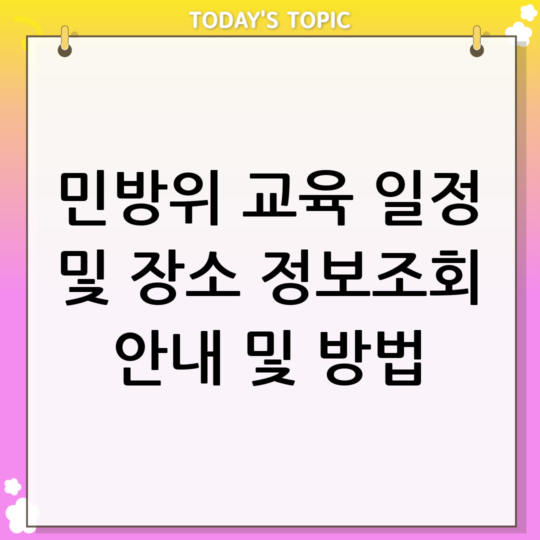 민방위 교육 일정 및 장소는 거주지 관할 시군구청 홈페이지 또는 주민센터를 통해 확인할 수 있습니다. 온라인 조회 시스템을 이용하면 간편하게 교육 정보를 얻을 수 있으며, 궁금한 사항은 해당 시군구 민방위 부서에 문의하면 자세한 안내를 받을 수 있습니다.
