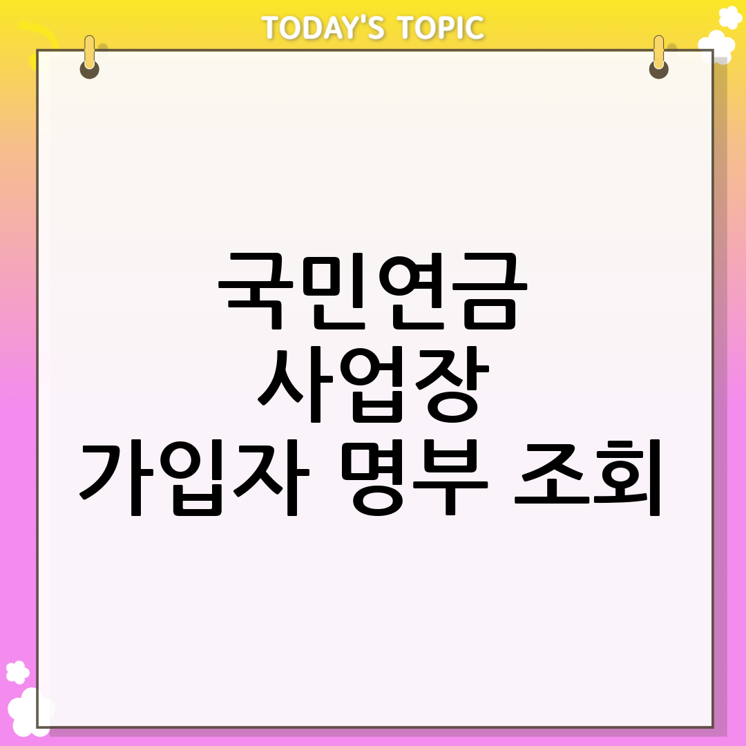 2025년 10월, 사업 운영에 필수적인 국민연금 관련 업무, 이제 쉽고 빠르게 처리하세요! 오늘은 국민연금 사업장 가입자 명부 조회 및 증명서 발급 방법에 대해 자세히 알아보겠습니다. 사업주라면 누구나 한 번쯤 필요했을 정보, 지금부터 꼼꼼하게 확인하시고 업무 효율성을 높여보세요. 본 가이드는 국민연금공단에서 제공하는 정보를 바탕으로 작성되었으며, 최신 정보는 반드시 해당 기관의 홈페이지 또는 문의처를 통해 확인하시기 바랍니다. … 더 읽기