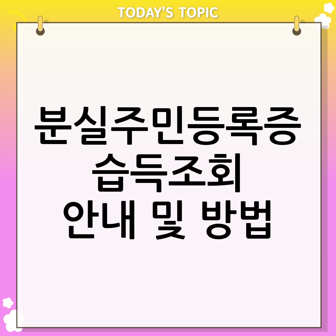 분실주민등록증 습득조회 안내 정부24 바로가기 대한민국 국민이라면 누구나 소지해야 하는 주민등록증, 하지만 예상치 못한 분실 사고가 발생할 수 있습니다. 잃어버린 주민등록증 때문에 걱정하고 계신가요? 다행히 정부에서는 분실 주민등록증 습득 여부를 간편하게 조회할 수 있는 서비스를 제공하고 있습니다. 이 글에서는 분실 주민등록증 습득 조회 방법을 상세히 안내하고, 관련 정보를 제공하여 여러분의 걱정을 덜어드리고자 합니다. 본 정보는 … 더 읽기