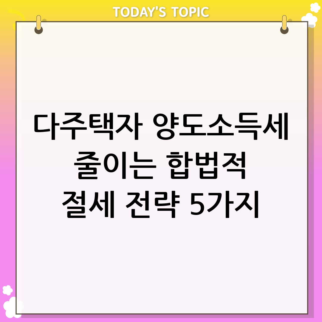 다주택자 양도소득세 줄이는 합법적 절세 전략 5가지